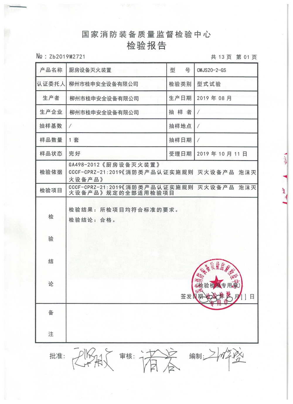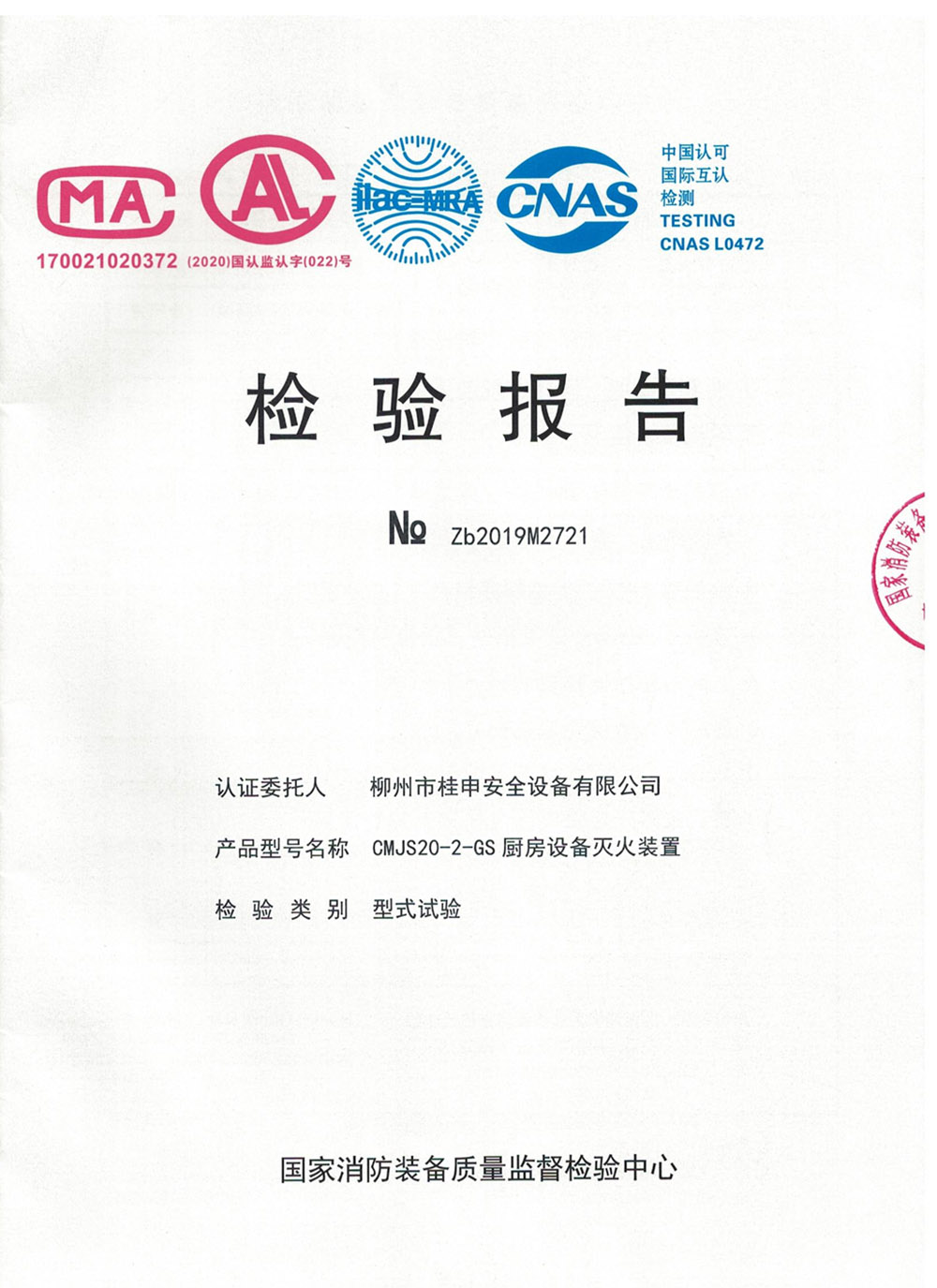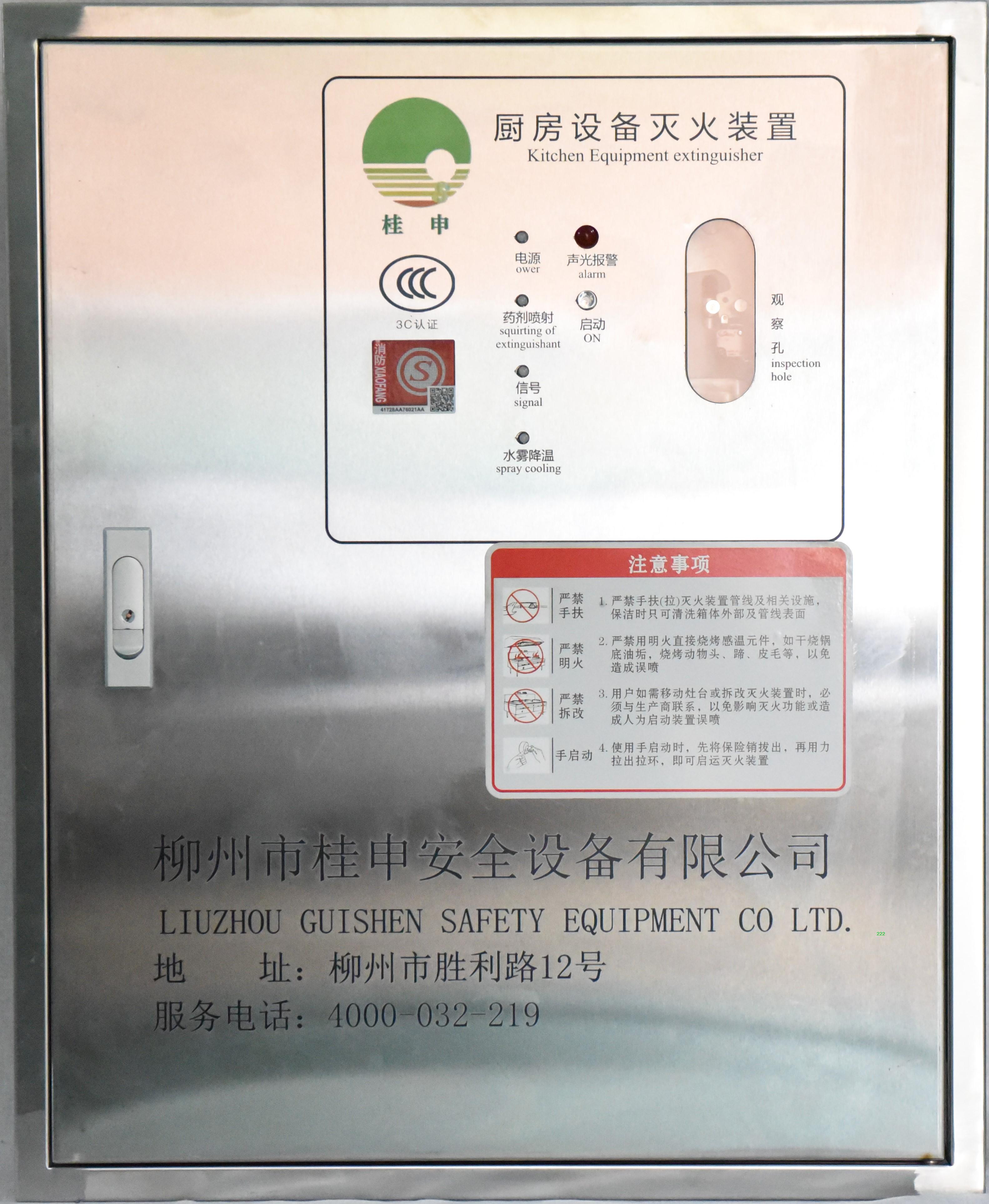 柳州市桂申安全设备有限公司是一家专业从事“厨房设备灭火装置”的生产厂家,是集研发、设计、生产、安装、维保于一体的高新企业。公司自主研发生产的CMJS10-1-GS型和CMJS20-2-GS型厨房设备自动灭火装置,已通过国家消防装备质量监督检验中心型式试验全项检测。 厨房设备自动灭火装置是现代公共厨房必备的灭火系统,是为了保障公共人员聚集场所的人身财产安全,避免因厨房火灾造成群死群伤而针对性研发的自动灭火产品,所用灭火剂无毒无污染易清理,灭火系统在3-8秒内完成厨房设备灭火,可广泛应用于酒店、宾馆、机关、医院、学校、部队、企事业单位的公共厨房。